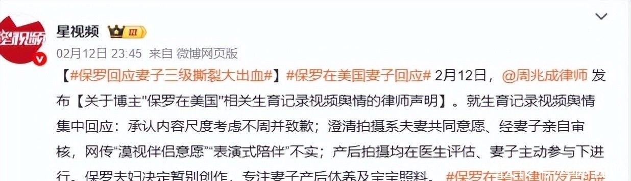 面对汹涌舆情与平台处罚,保罗𱆎分委托北京周兆成律师事务所发布《关于保罗夫妇生育纪实视频事件的法律声明》。